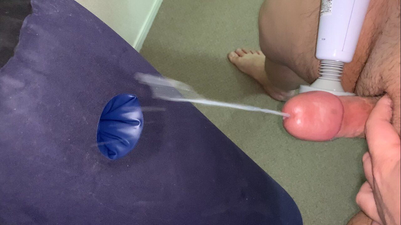 Small Penis With A Vibrating Massager Shooting A Load On An Inflatable Pillow